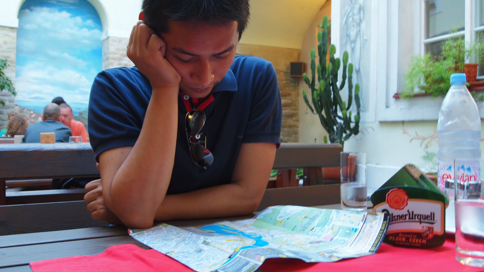 inilah rupanya travel sendiri ye, tengah tunggu makanan kena study map..!